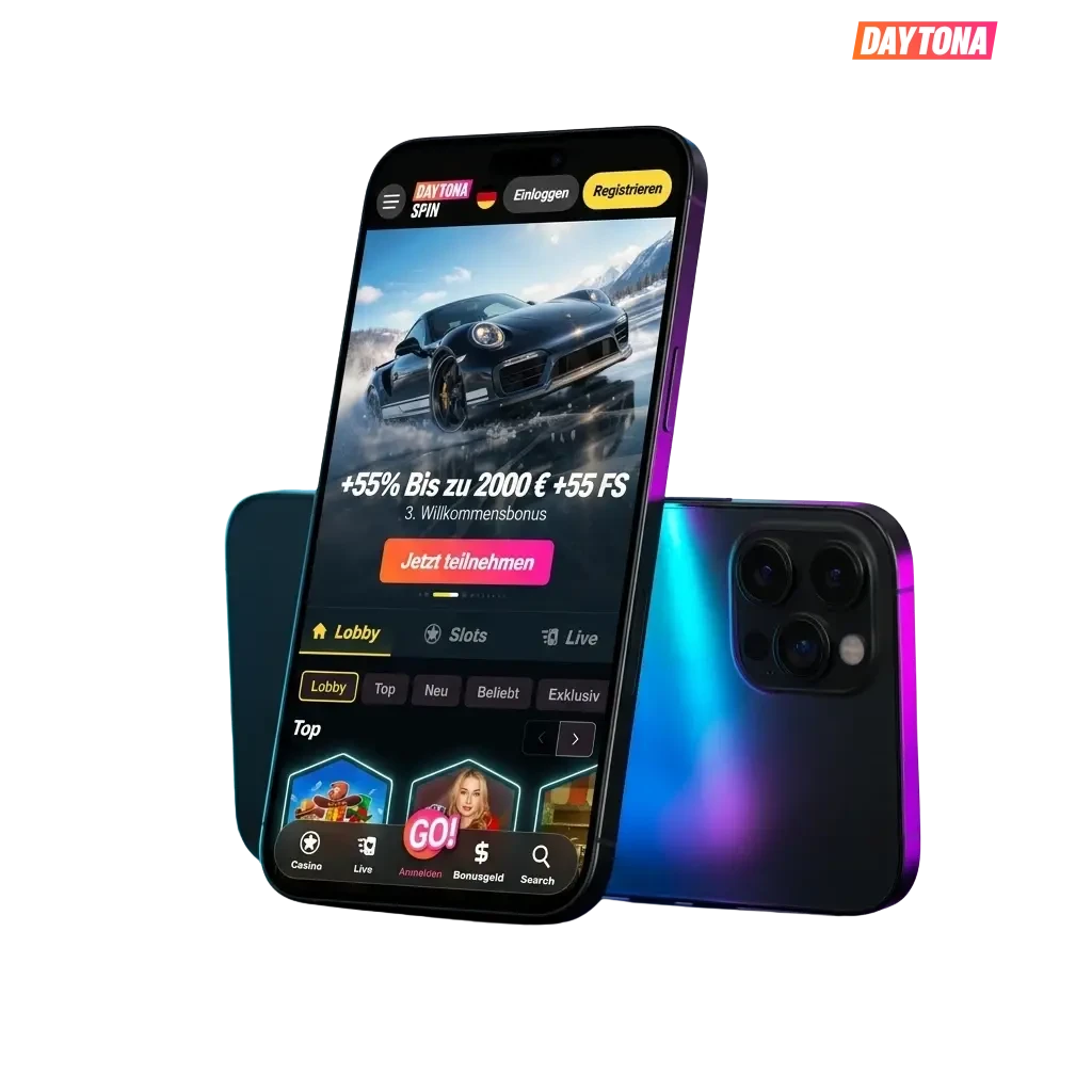 Die offizielle Daytona Spin Anwendung steht sowohl Android- als auch iOS-Nutzern zur Verfügung. Nach dem Download erhalten Spieler in Deutschland sofortigen Zugriff auf Sportwetten, Casino-Spiele und alle Zahlungsfunktionen der Plattform.